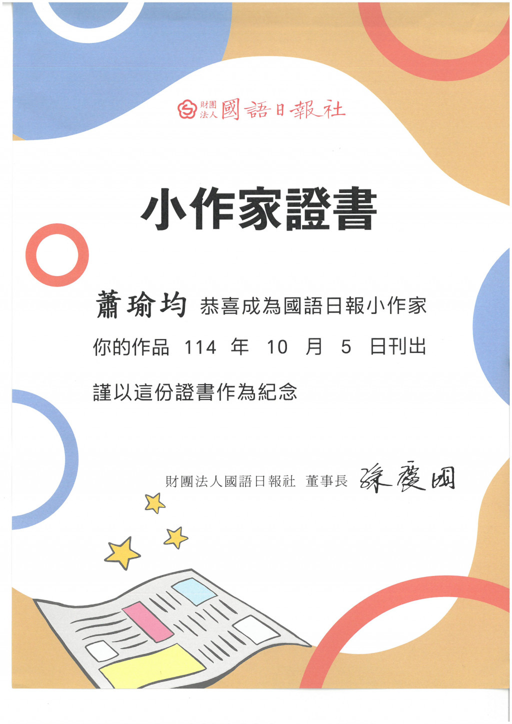 財團法人國語日報社2025「讀品格好文,寫感恩故事 徵文活動」活...