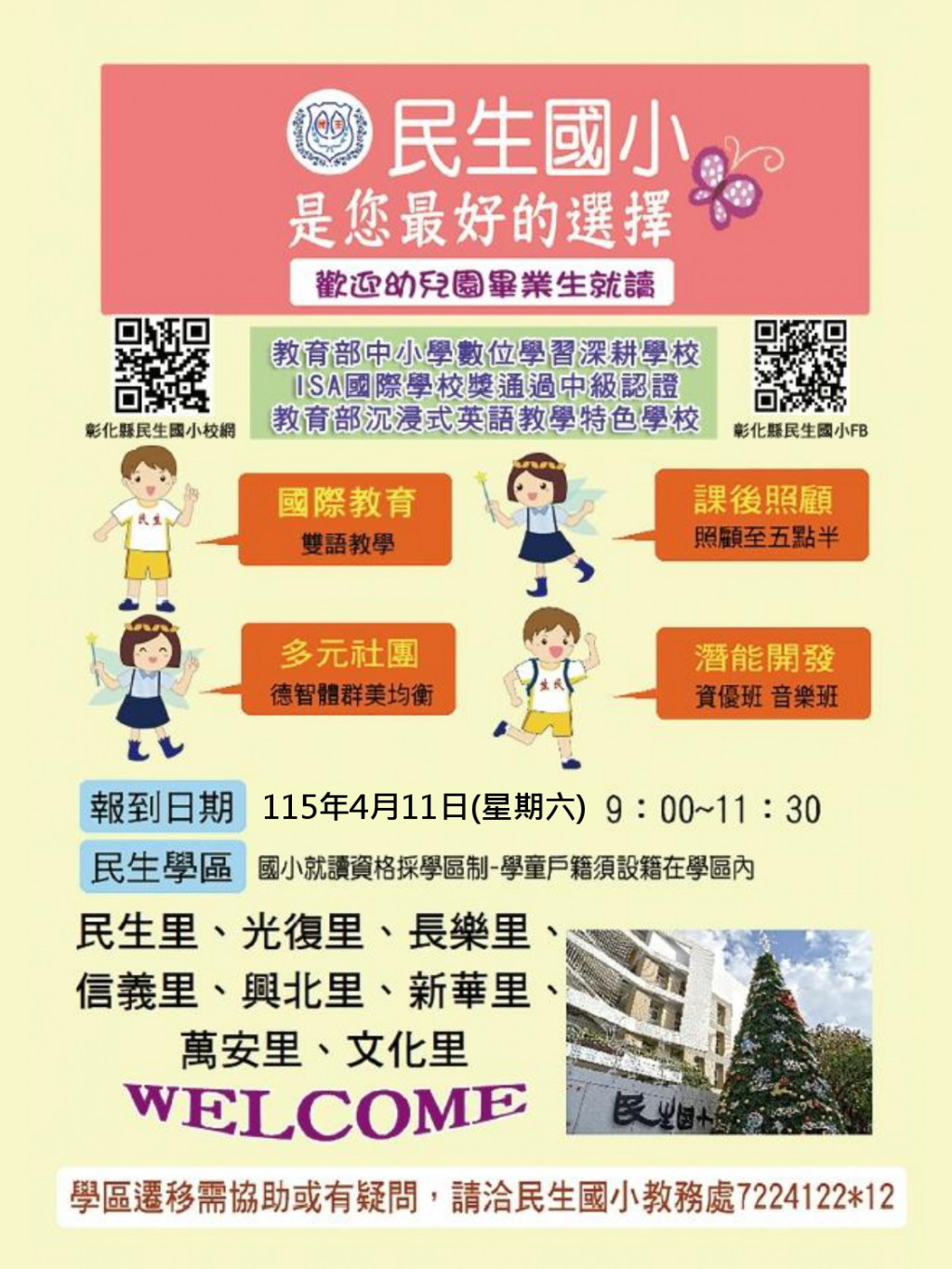 一、按「國民教育法施行細則」第7條第1項第1款及「強迫入學條例施行細則」第2條規定,115學年度學齡兒童以108年9月2日至109年9月1日出生者為對象,未足齡兒童非依法不得提早報到入學,並應遵循「彰化縣國民中小學學區劃分要點」第5點規定辦理。
