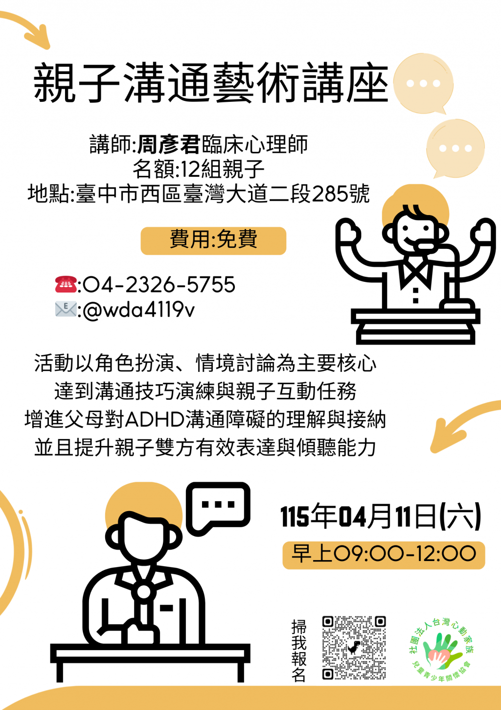 對象:ADHD之教師、家長與照顧者、有興趣之民眾 |